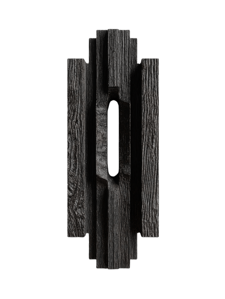 Из заготовки вручную вычищаются мягкие волокна, а затем при помощи огня изделие обжигается, что создаёт прочную угольную корку, защищающую от влаги и насекомых. После очистки дерево покрывается натуральным маслом с добавлением воска и вишневого угля для придания глубокого, черного, матового цвета. Получаются неповторимые поверхности, играющие светом, словно ожившие слои времени.